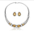 Tear-Drop White Rhodium Earrings adorned with amber-hued zirconia stones. A bold and elegant design that blends warm tones and sculptural metalwork for a sophisticated statement look.